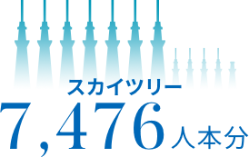 当社が最も強みとするシーリング工事。その工事の全長は年間で4,740kmにも及びます。マサルも建設に携わった東京スカイツリー(634m)7476本分と同じ長さになります! ※目地幅15㎜×10㎜で換算