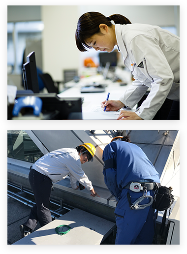 大きな建物では、コンクリート、鉄筋、塗装などさまざまな分野の会社、技術者が協力して、一つの建物を作り上げていきます。そのため、自分の管理する工事だけでなく、前工事、後工事の関連会社とも連携をとり作業を円滑に進めるため、工程や品質などを管理する人が必要です。