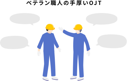 ベテランの職⼈の下で、OJT※中⼼の⼿厚い指導を受けることができ、